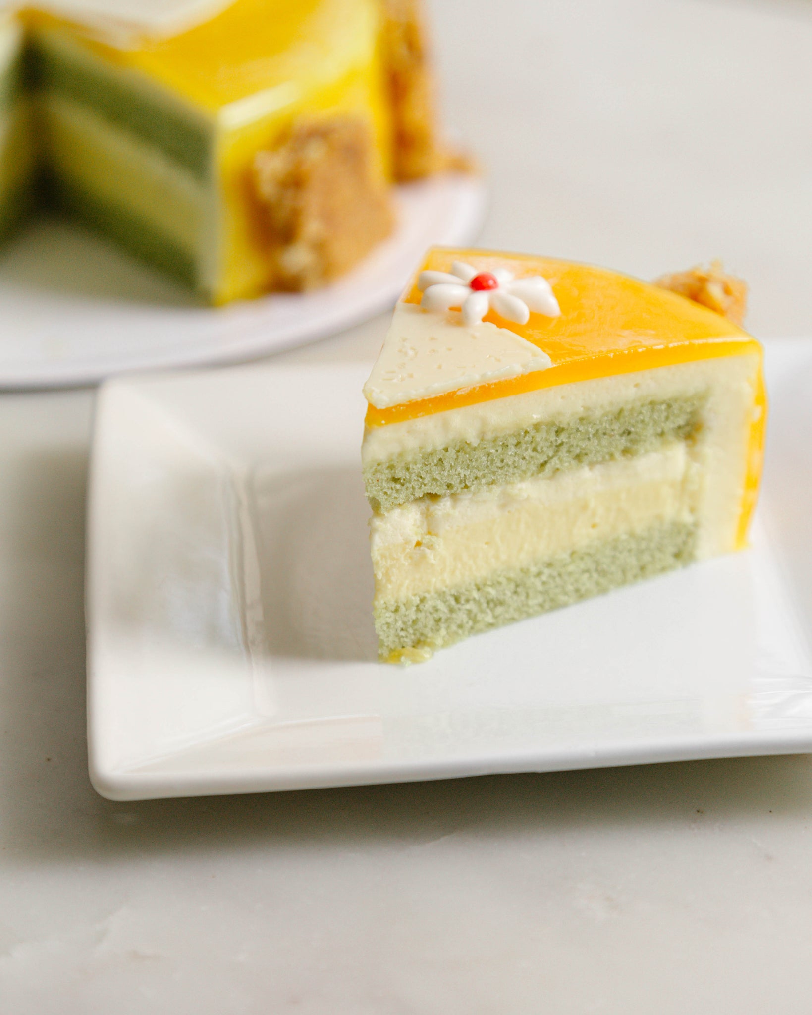 Tropical mousse, pistachio sponge and a passion fruit cremeux.